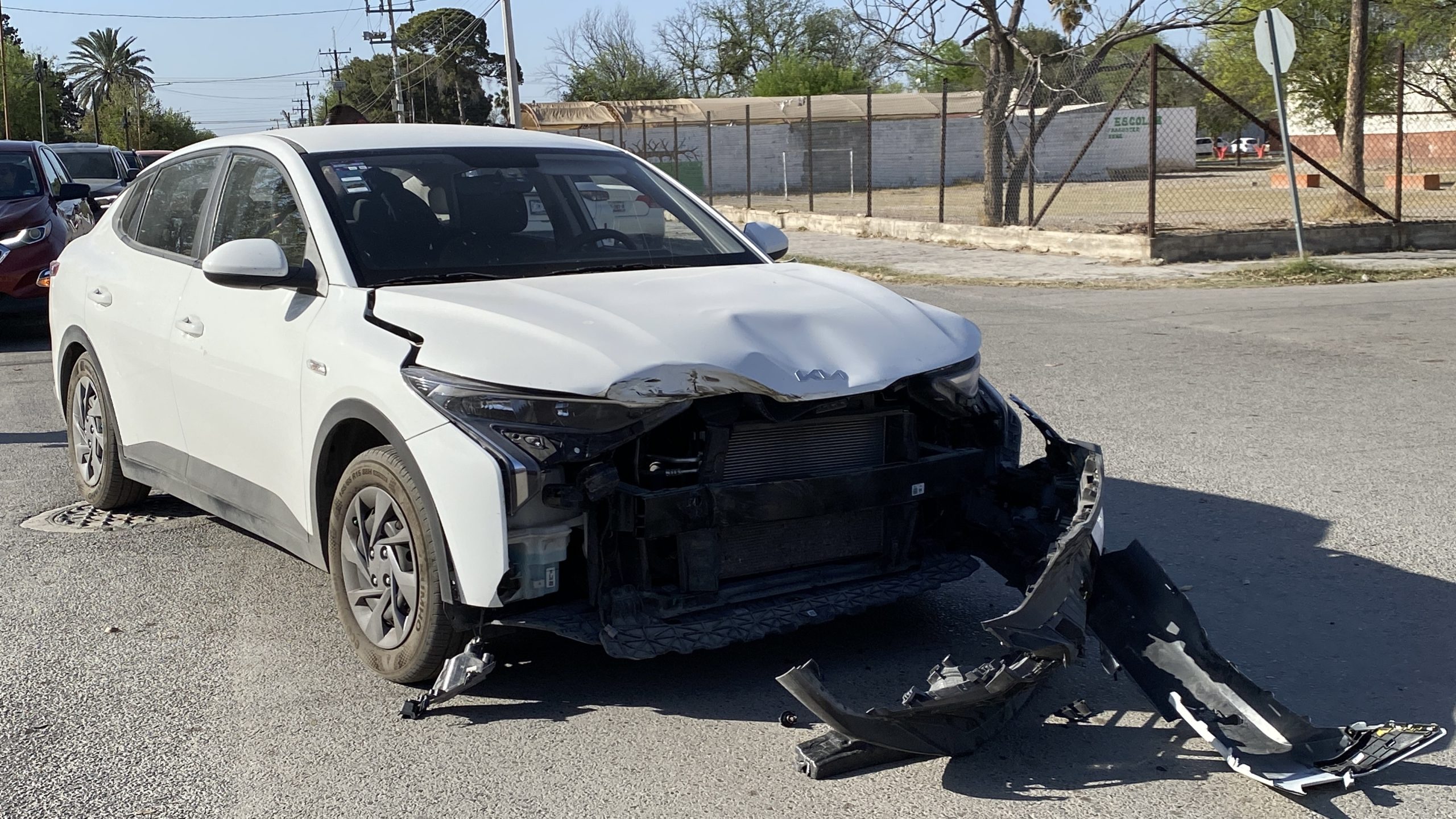 El saldo cuantiosos daños materiales luego que un auto Kia color blanco con placas de Coahuila, modelo 2023 resultó severamente dañado luego que una pick uP Ford Platinum de reciente modelo con placas del estado de Texas en una vuelta prohibida no hizo alto y ocasionó el accidente.
