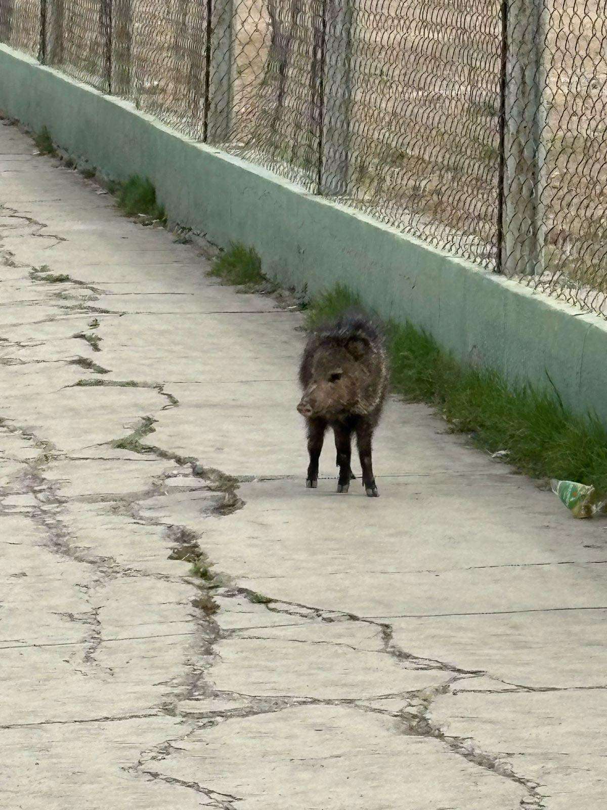 El simpático “Pumba” causo asombro entre comensales de un puesto de tacos en bulevar Adolfo López Mateos y Simón Bolivar. Autoridades de seguridad y auxilio locales se concentraron en el lugar para su captura y posterior reubicación en su hábitat natural.