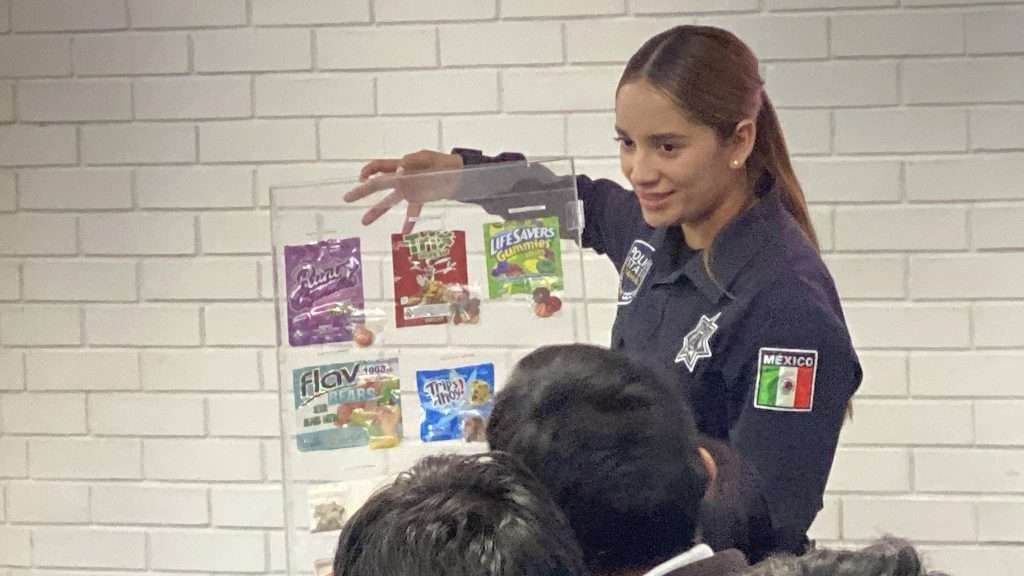 Los elementos de la policía del Estado, brindaron pláticas sobre el tema de las adicciones e hicieron una demostración mediante un muestrario de narcóticos decomisados en distintos operativos y acciones.