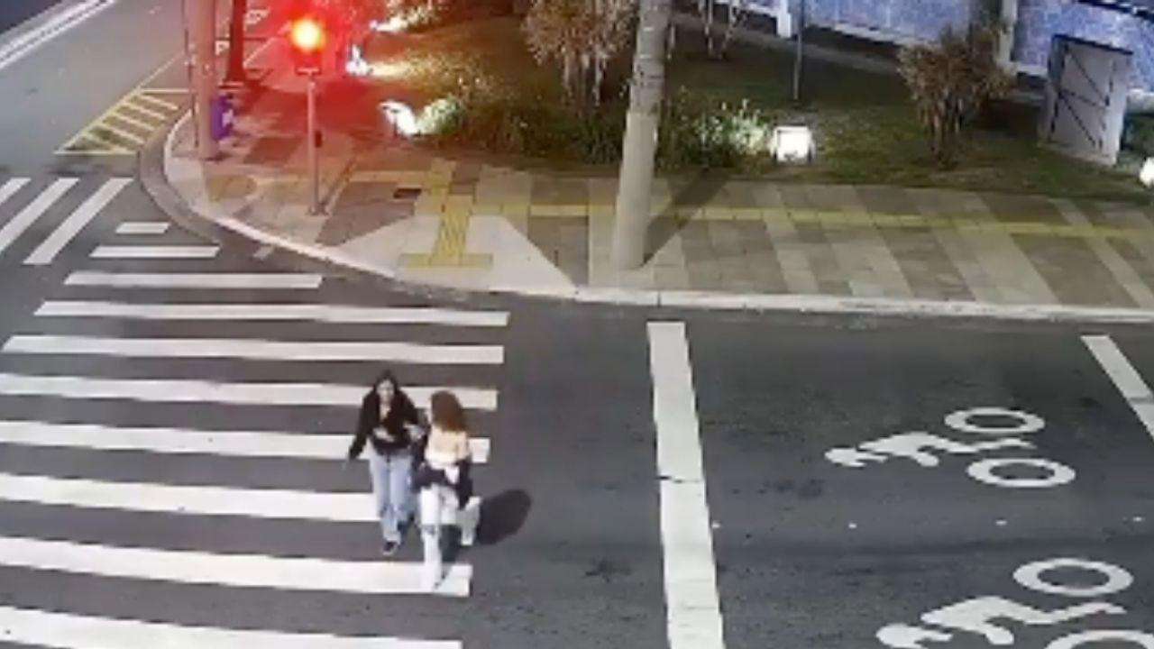 El incidente fue captado por cámaras de videovigilancia de la zona. En las imágenes, se observa a las jóvenes de 18 años caminando juntas por la banqueta. Luego de intercambiar algunas palabras, decidió avanzar pese a que el semáforo aún no les daba paso.