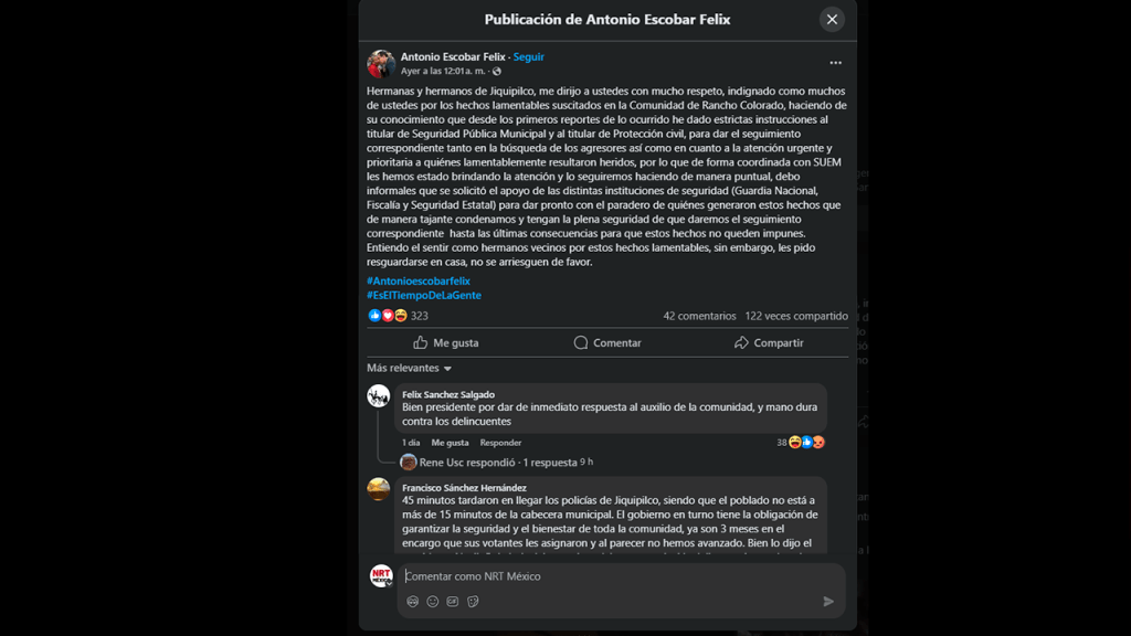 Como resultado, dos personas, identificadas como Ricardo y Juan, resultaron heridas de bala. Fueron trasladadas a un hospital, donde Ricardo falleció mientras recibía atención médica. A pesar de las heridas, los habitantes del lugar lograron desarmar a los agresores y trataron de lincharlos. Golpearon a un hombre y a una mujer, además de quemar el vehículo en el que viajaban.