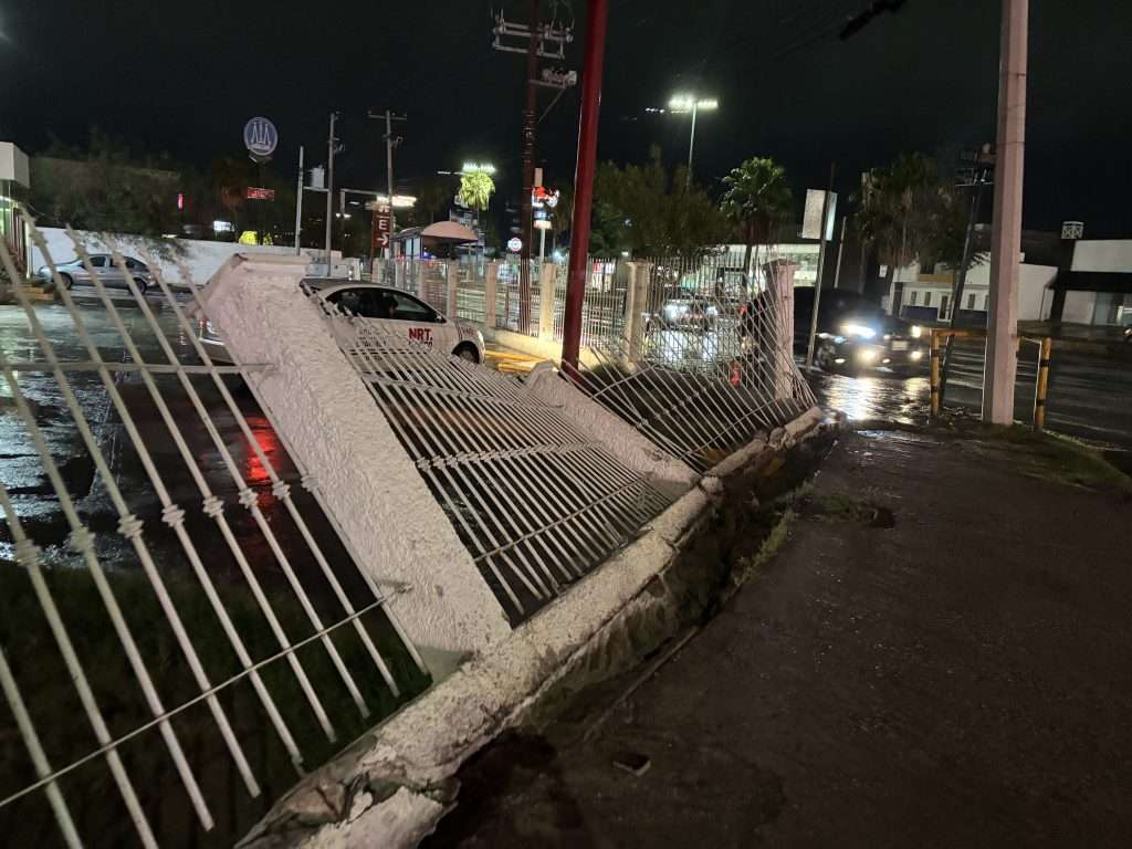 Después de derribar gran parte de la barda de una sucursal bancaria, un conductor imprudente huyó del lugar, el accidente ocurrió en la intersección de Pape con Juárez.