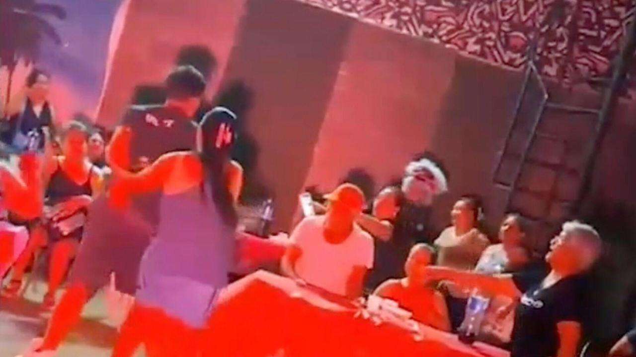El artista nota la amenaza y se aleja de inmediato. Algunas asistentes, en su mayoría mujeres, intentan calmar la situación y evitan una confrontación mayor. La misma mujer que participaba en el show interviene para alejar al joven del lugar. Gracias a esa acción, no hubo lesiones ni consecuencias mayores.