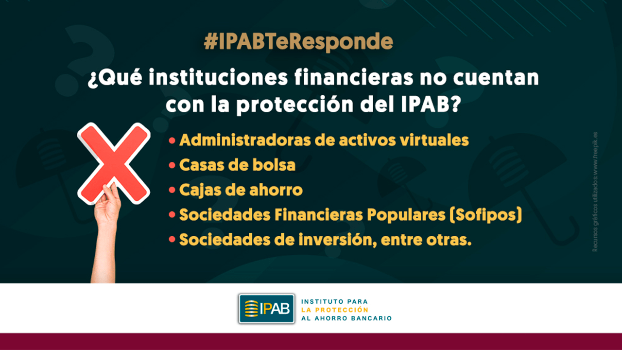 De acuerdo con el IPAB, su cobertura no se extiende a entidades como administradoras de activos virtuales, casas de bolsa, cajas de ahorro, sociedades financieras populares (Sofipos) y sociedades de inversión, entre otras. Esto significa que en caso de una quiebra o problemas financieros, los ahorradores en estas instituciones no están cubiertos por el seguro de depósito del IPAB.