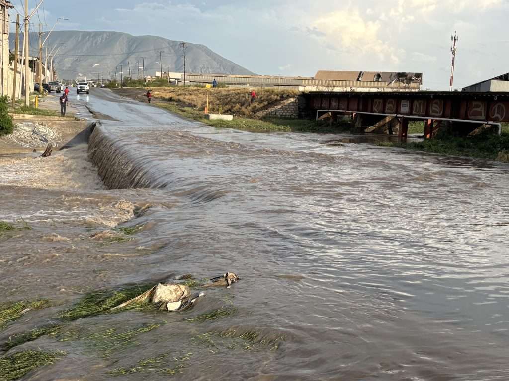 Vialidades importantes como la avenida Acereros y la avenida Industrial también resultaron afectadas. En el estadio Monclova, la fuerza del agua derribó metros de malla ciclónica, generando daños estructurales.