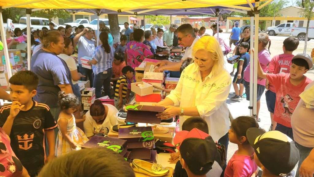 En una jornada de solidaridad y cercanía con la comunidad, la primera priista del municipio, Laura Jiménez Gutiérrez, encabezó una brigada de entrega de calzado nuevo en la comunidad de Minas La Florida, acompañada por Luis F. Santos Flores, presidente del Comité Municipal del PRI; Jesse Guerrero, coordinador municipal de activismo, y otros miembros del comité.