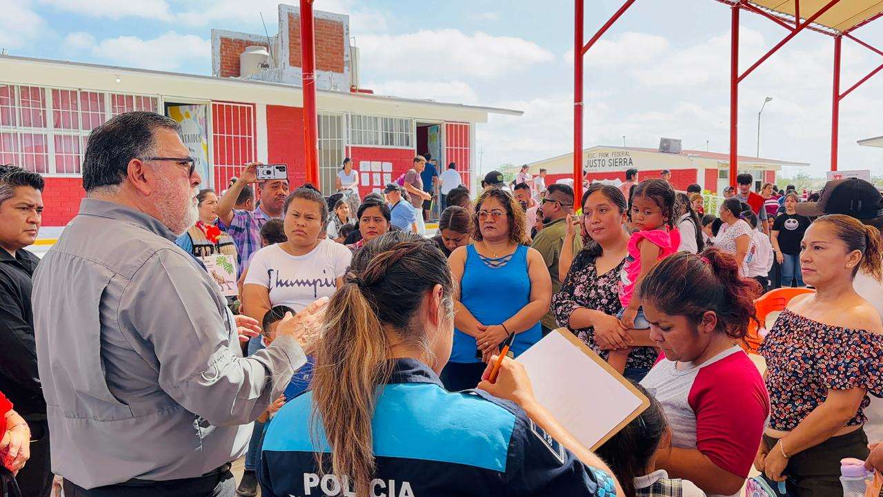 Dentro de la brigada ‘’por amor a tu escuela’’ que se realizó en la escuela primaria Justo Sierra ubicada en el sector de Noblasi II, el alcalde Emilio de Hoyos en su mensaje dio a conocer que esta escuela había sido víctima de robo.