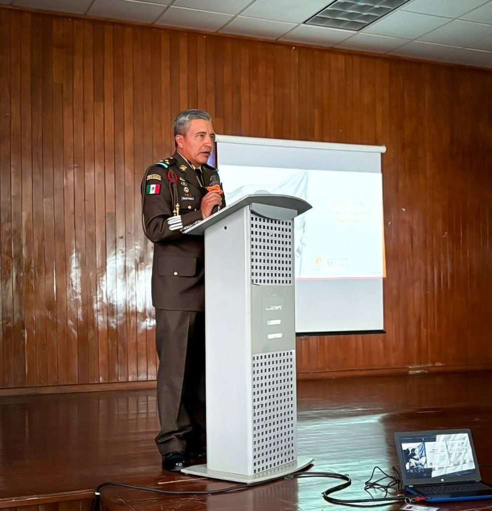 Como parte de las acciones para promover la conciencia y responsabilidad cívica, el Tecnológico Nacional de México (TecNM) Campus Múzquiz recibió la visita del Coronel de Caballería Diplomado del Estado Mayor Mario Noé Martínez Contreras, comandante del 14/o Regimiento de Caballería Motorizado, quien impartió la conferencia “Cultura de Seguridad Nacional”.
