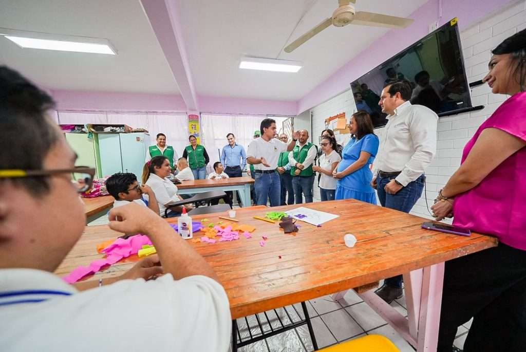 Como parte del compromiso del Gobierno del Estado con la educación de las niñas, niños y jóvenes coahuilenses, estudiantes del Centro de Atención Múltiple (CAM) No. 34 recibieron la visita de la Subsecretaria de Gobierno en la Región Norte, Sonia Villarreal Pérez, quien, acompañada del diputado local Guillermo Ruiz Guerra, hizo entrega oficial de la obra de impermeabilización y sustitución de lámparas interiores y exteriores.