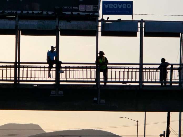 encontró a la persona un hombre de aproximadamente 40 años recargado peligrosamente sobre el pasamanos del puente peatonal.