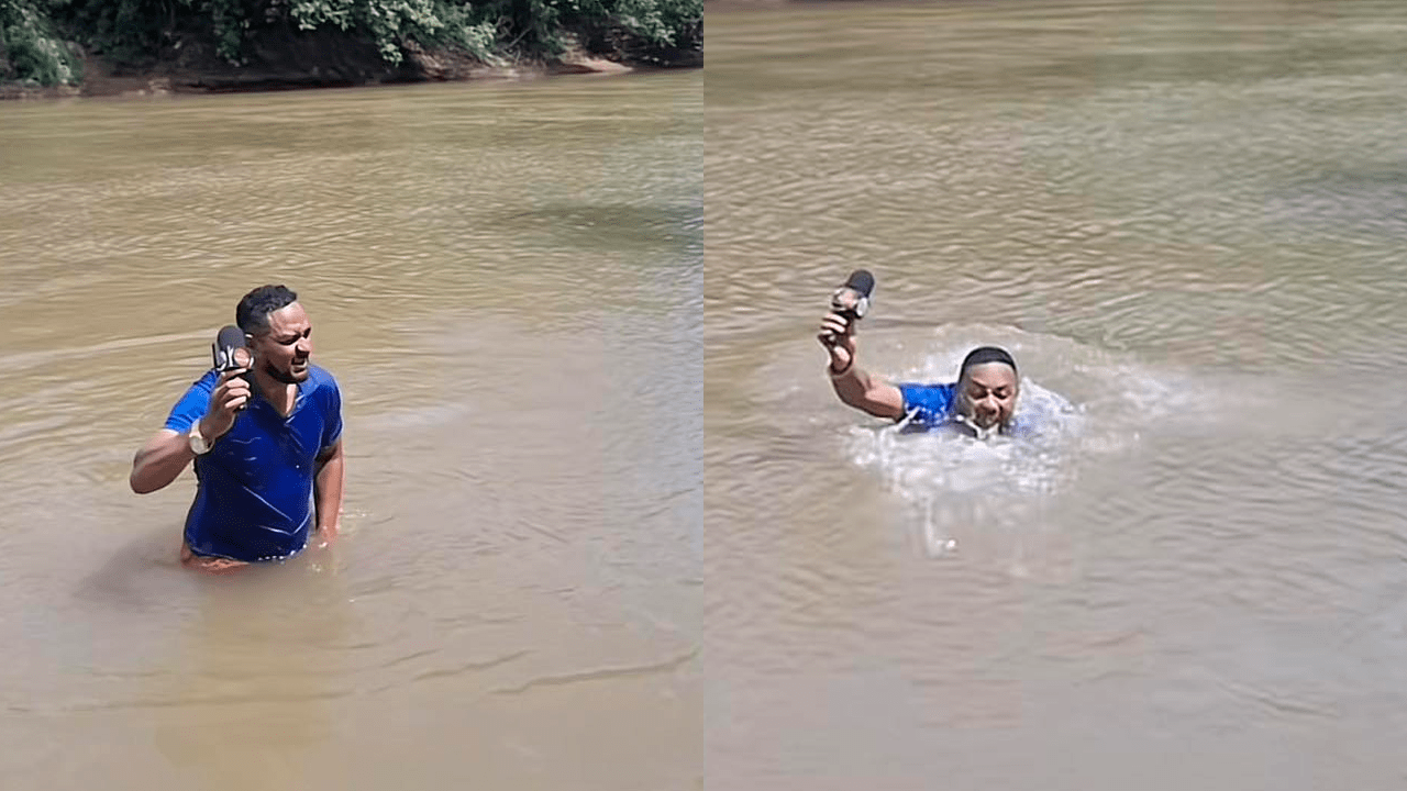 Reportero #LenildoFrazão, descubre el cuerpo de una niña desaparecida mientras transmitía en vivo desde un río en #Brasil.