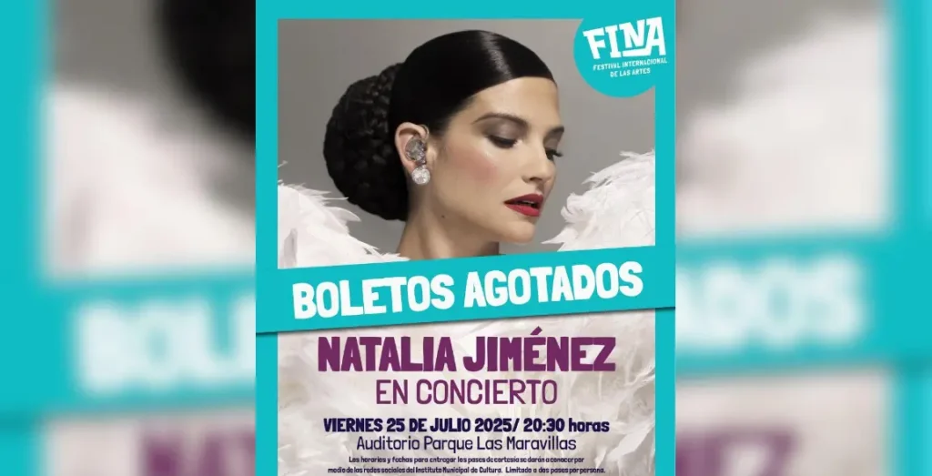 El concierto de Natalia Jiménez forma parte de la cartelera cultural con motivo del 448 aniversario de la ciudad de Saltillo, y promete ser uno de los eventos más memorables del año