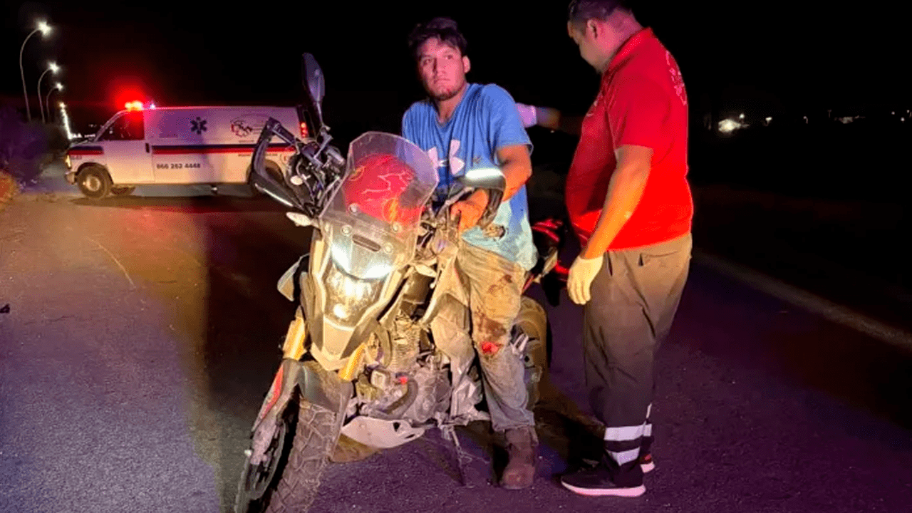 David Cedillo Carrizalez, joven de 20 años, fue quien protagonizó este incidente mientras circulaba por dicha vía de alto tránsito vehicular. Paramédicos del Grupo de Rescate y Urgencias Monclova (GRUM) le brindaron atención inmediata en el lugar del percance.