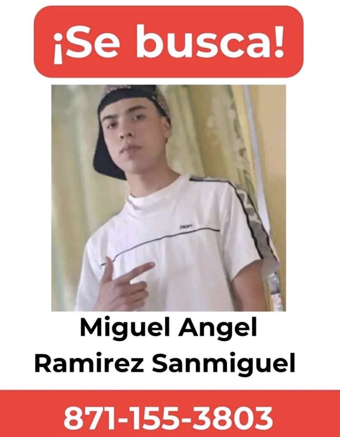 Miguel Ángel Ramírez Sanmiguel, un joven de 18 años de edad, se encuentra desaparecido desde el pasado viernes, lo que ha generado profunda preocupación entre sus familiares, quienes han comenzado su búsqueda por diversos medios.