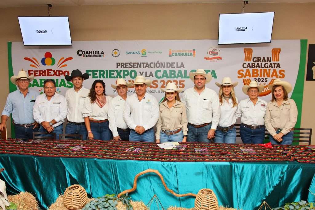 En rueda de prensa, el alcalde Chano Díaz presentó los detalles de los eventos, acompañado de autoridades y representantes de los comités organizadores, entre ellos: Cristina Amezcua González, Secretaria de Turismo y Desarrollo de Pueblos Mágicos; Lic. Julio Aguirre Montemayor, Presidente del Patronato de la Gran Cabalgata de Sabinas 2025; Lic. Mabel Rodríguez Gutiérrez, Tesorera del Comité Feriexpo Sabinas 2025; Lic. Francisco Tobías Hernández, Subsecretario de Gobierno en la Región Carbonífera; Lic. Martha Elena Moncada Zertuche, Subsecretaria de Turismo en el Estado; Lic. Jesús Torres Gámez, Director de Promoción Turística de Pro Coahuila; Lic. Javier Ruiz Izaguirre, Presidente de OCV Carbonífera, y Sra. Hortensia Reyna, Propietaria del Rancho San José.