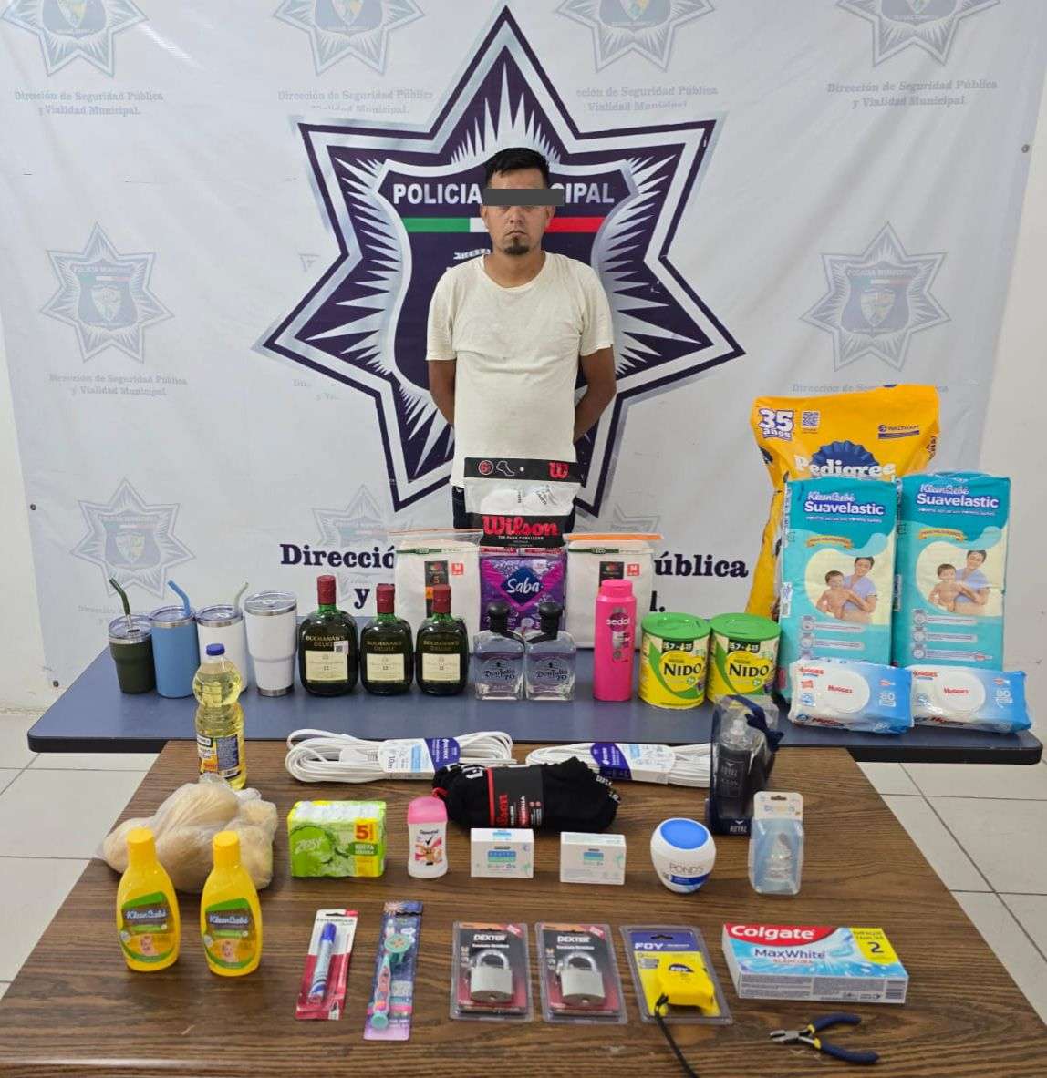 El sujeto llevaba consigo un carrito de servicio lleno de mercancía, entre la que se encontraban productos alimenticios, bebidas alcohólicas, artículos para bebé, de aseo personal y de uso doméstico, con un valor aproximado de ocho mil pesos.