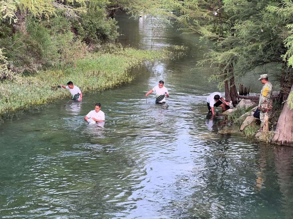 En un firme compromiso con la sociedad y el cuidado del medio ambiente, integrantes del 14/o Regimiento de Caballería Motorizado, acompañados por conscriptos y mujeres voluntarias del Servicio Militar Nacional (SMN), realizaron una intensa jornada de labor social en el Río Sabinas, en el Pueblo Mágico de Múzquiz.