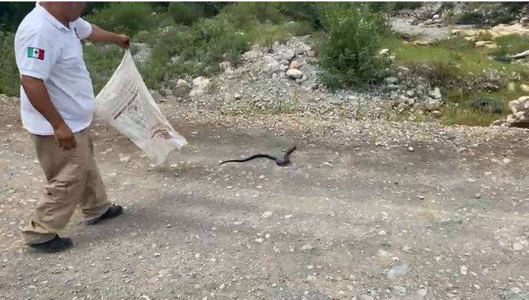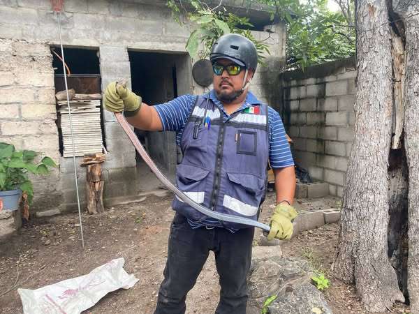 “Se atiende reporte de la presencia de una víbora en el patio de una vivienda. Se localiza y se captura, regresándola a su hábitat natural”, señaló Guajardo Loo.