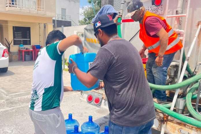 Ante el grave desabasto de agua potable que sigue afectando a las colonias de la parte alta de Piedras Negras, las autoridades Municipales iniciaron hoy el reparto gratuito del vital líquido mediante pipas, para atender de inmediato a miles de familias que llevan días sin servicio o con baja presión en el mismo.