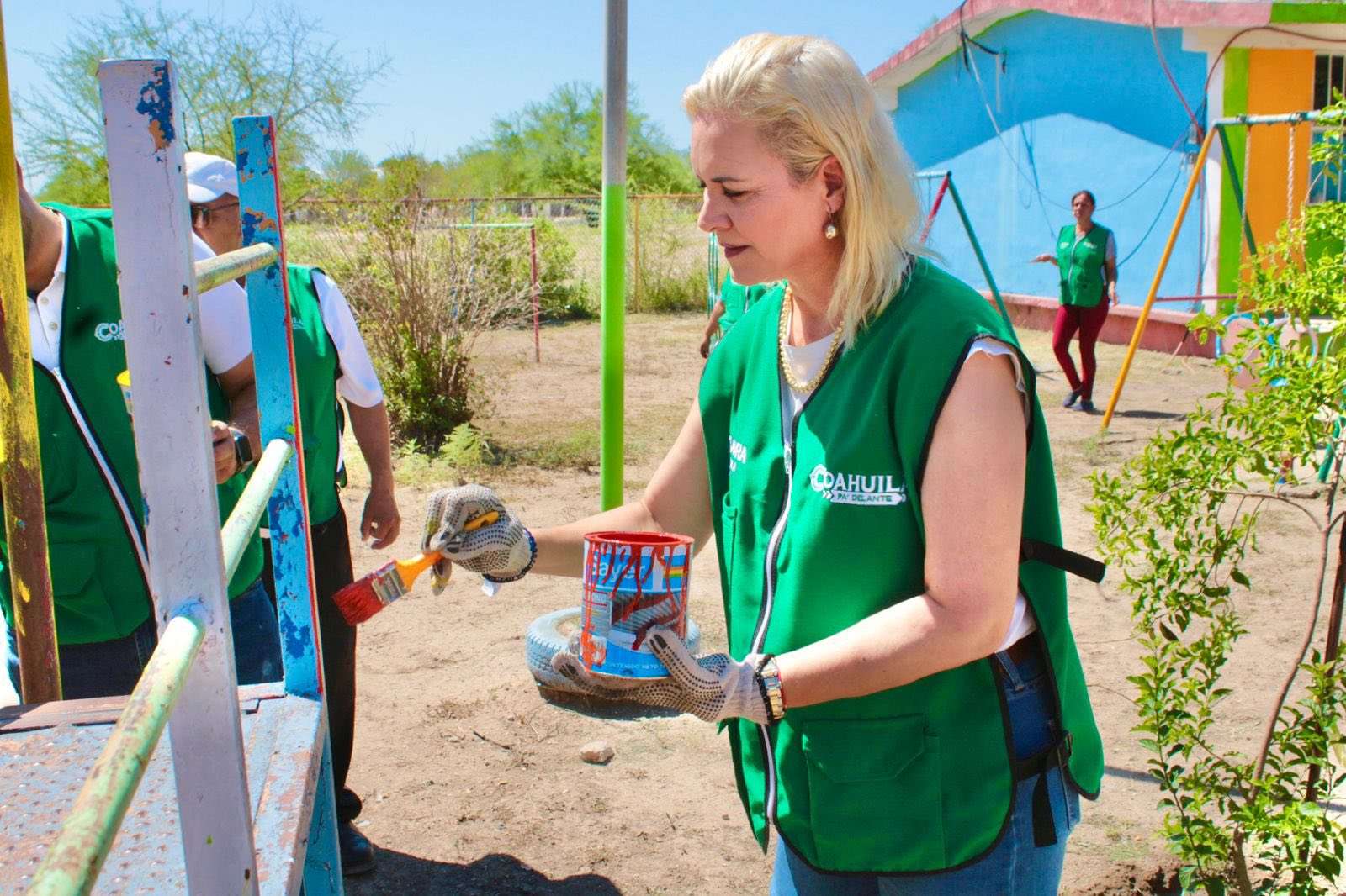 “Hoy realizamos labores de pintura y limpieza en el Jardín de Niños Jaime Torres Bodet de la comunidad de Rancherías. En equipo con los Amigos Funcionarios Estatales y el grupo de Mejora Coahuila, mejoramos este plantel educativo para que nuestras niñas y niños regresen a clases en espacios más dignos y agradables”, expresó.