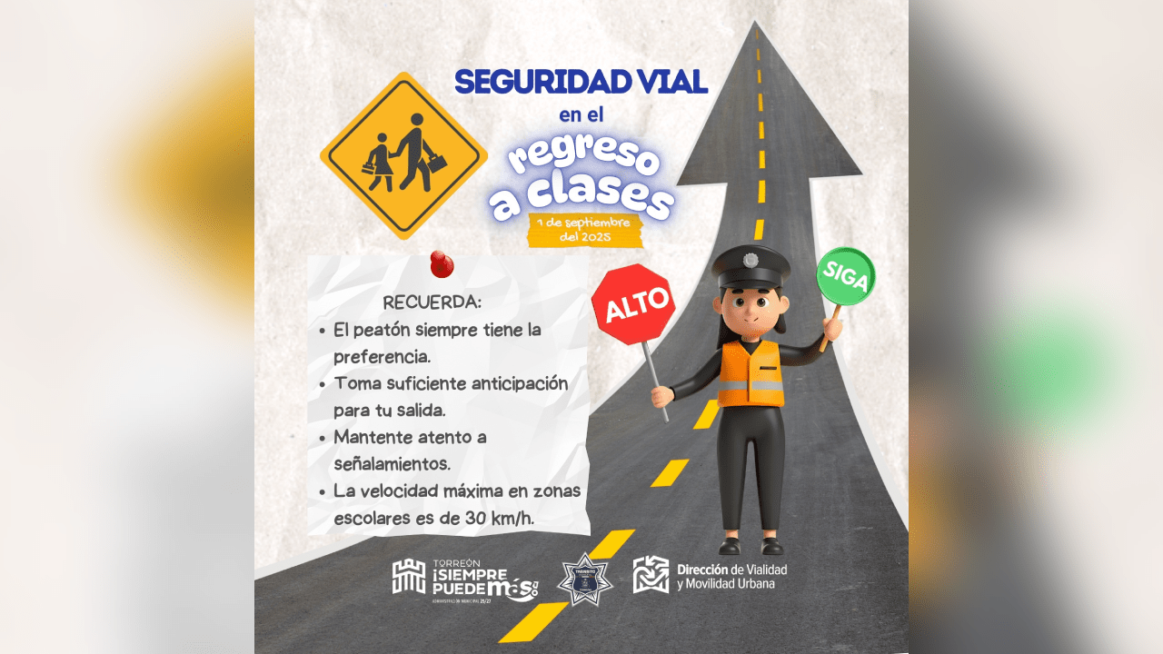 La Administración Municipal, a través de la Dirección de Vialidad y Movilidad Urbana, implementará un operativo con la participación de 100 agentes de tránsito distribuidos en diferentes planteles educativos para garantizar un regreso a clases con orden y seguro.
