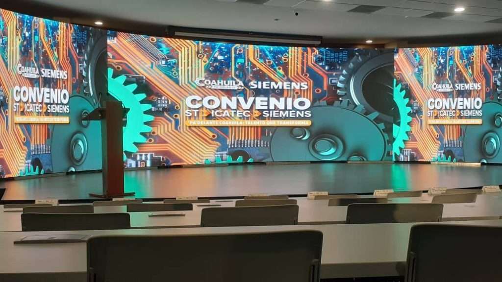 El Director General del TECNM – Campus Múzquiz, Mtro. Santos Eduardo De la Garza, acompañado de docentes y alumnos del Instituto, participó en la firma de convenio entre la Secretaría del Trabajo, el ICATEC y la empresa SIEMENS, realizada en las instalaciones del Consejo Estatal de Ciencia y Tecnología (COECYT).
