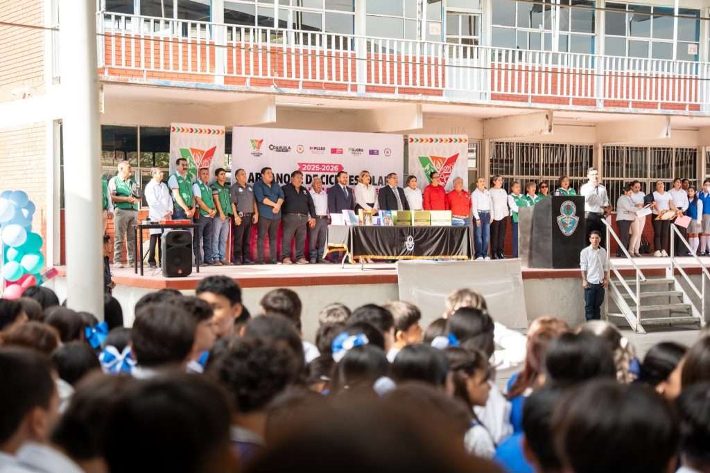 En la Secundaria Ildefonso Fuentes, se llevó a cabo el arranque oficial del ciclo escolar 2025-2026, donde además se entregaron útiles escolares y libros de texto, brindando a niñas, niños y jóvenes las herramientas necesarias para fortalecer su aprendizaje.