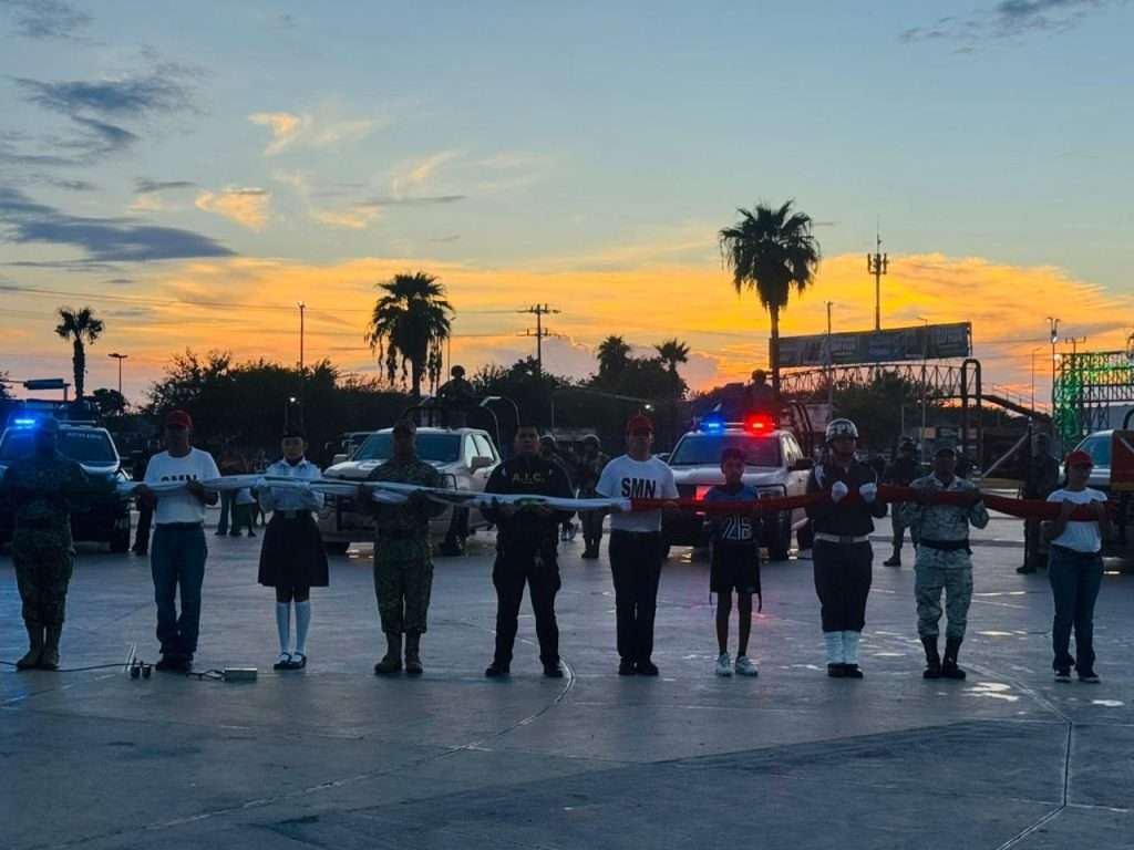 En la explanada de la presidencia municipal se desarrolló el protocolo cívico con la participación de bandas de guerra de la Secretaría de la Defensa Nacional, el CBTIS, el Tecnológico de Acuña, el Conalep, el Pentathlon Militarizado y la Banda de Música Municipal.
