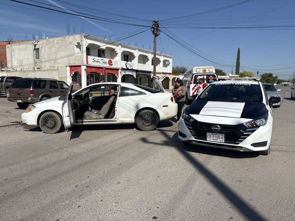 Un choque vehicular registrado en el cruce de las calles Zaragoza y Pérez Treviño dejó como saldo únicamente daños materiales. No se reportaron personas lesionadas.