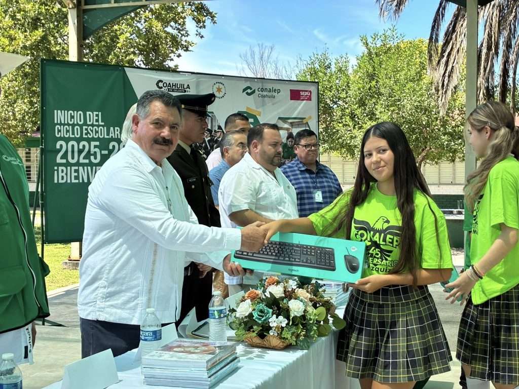 Como parte de la conmemoración, se realizó la entrega de nuevo equipo de cómputo y libros de texto, recursos que fortalecerán los procesos de enseñanza-aprendizaje y brindarán a los estudiantes mejores herramientas para su formación académica y técnica.