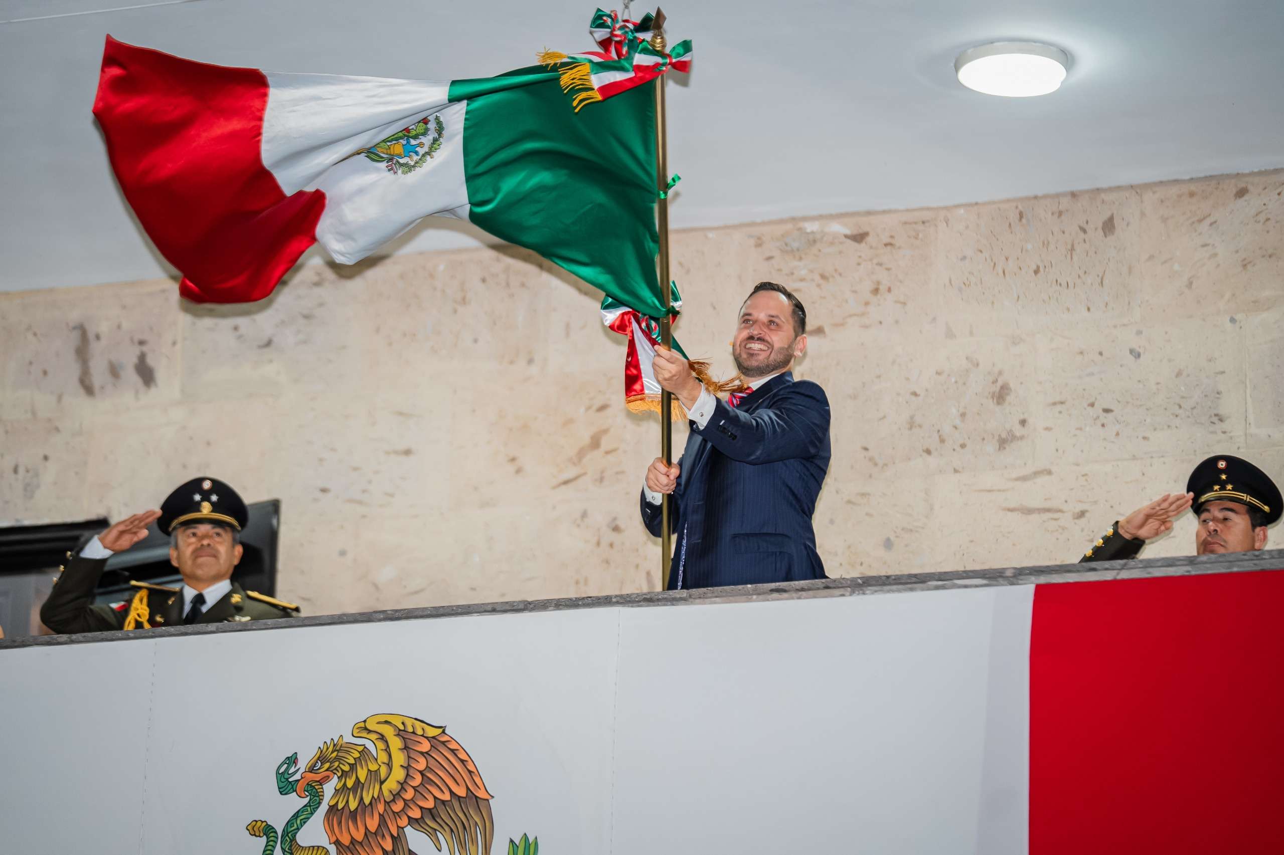 Acompañado de su familia, autoridades militares, regidores, directores de dependencias y miles de ciudadanos el alcalde evocó la memoria de los héroes que forjaron la libertad de nuestra Nación, mientras miles de voces respondieron con fuerza y entusiasmo al tradicional “¡Viva México!”.
