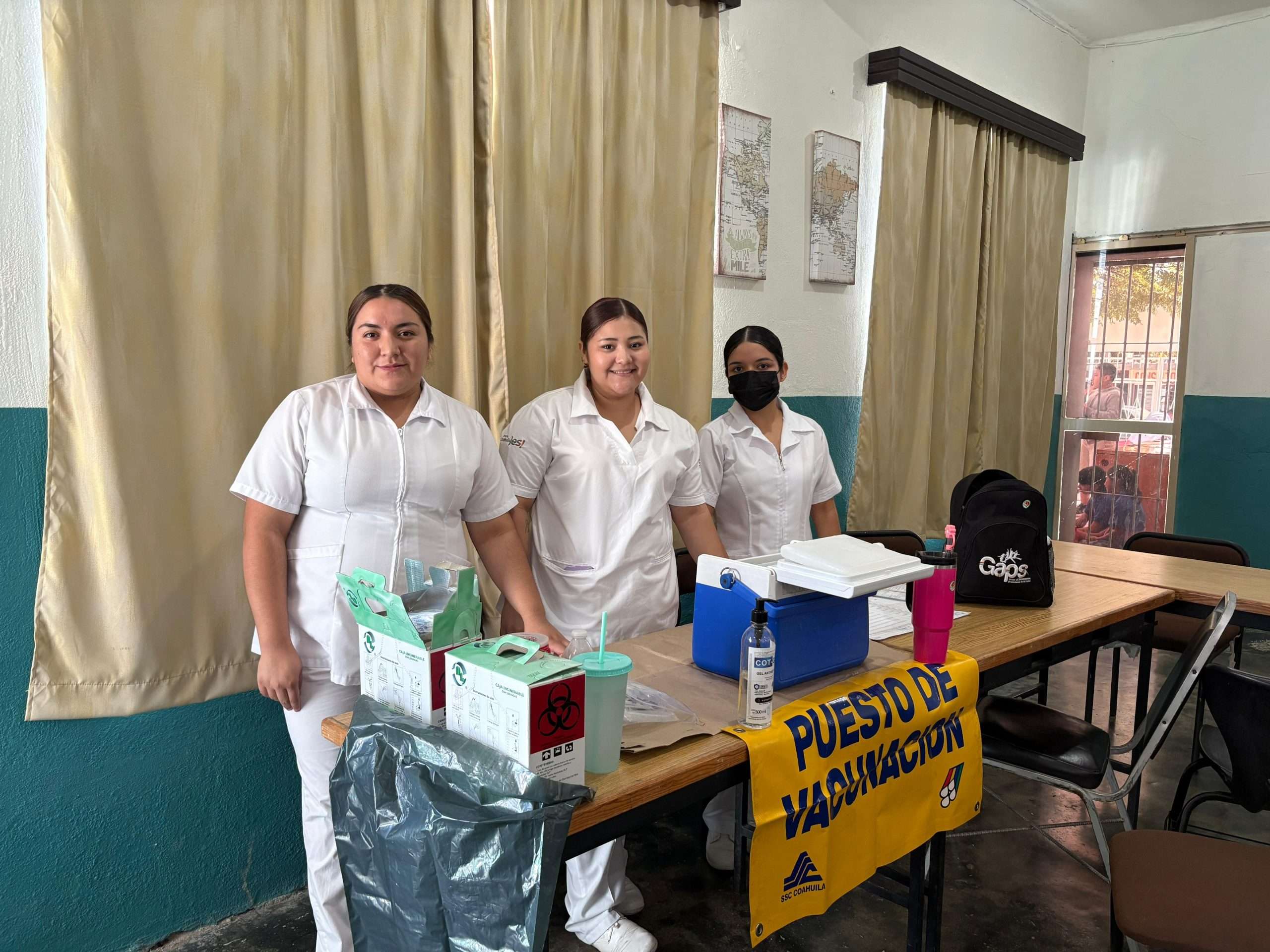 Bajo la dirección del Dr. Carlos Jiménez Villarreal, jefe de la Jurisdicción Sanitaria No. 3, se refuerzan los esquemas de vacunación con la aplicación de dosis contra sarampión, rubéola y hepatitis, cubriendo a aquellos alumnos que tenían esquemas incompletos.