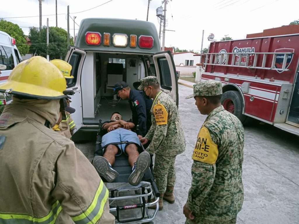 Los simulacros se realizaron con el apoyo de Protección Civil, Guardia Civil, Bomberos de Múzquiz y Seguridad Pública, quienes participaron en evacuaciones ordenadas y prácticas de atención a personas lesionadas.