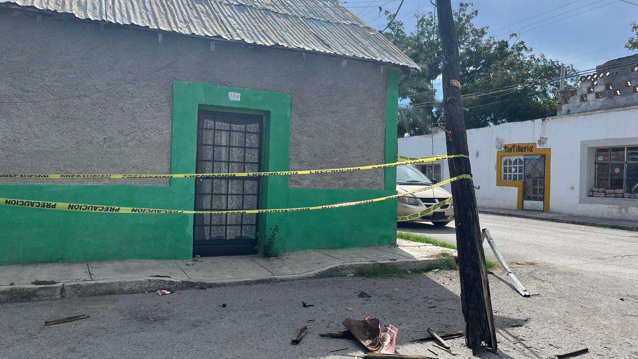 El impacto ocasionó la caída del poste, un señalamiento vial y daños en un abanico de una vivienda ubicada en el cruce de las calles Victoria y Francisco I. Madero.
