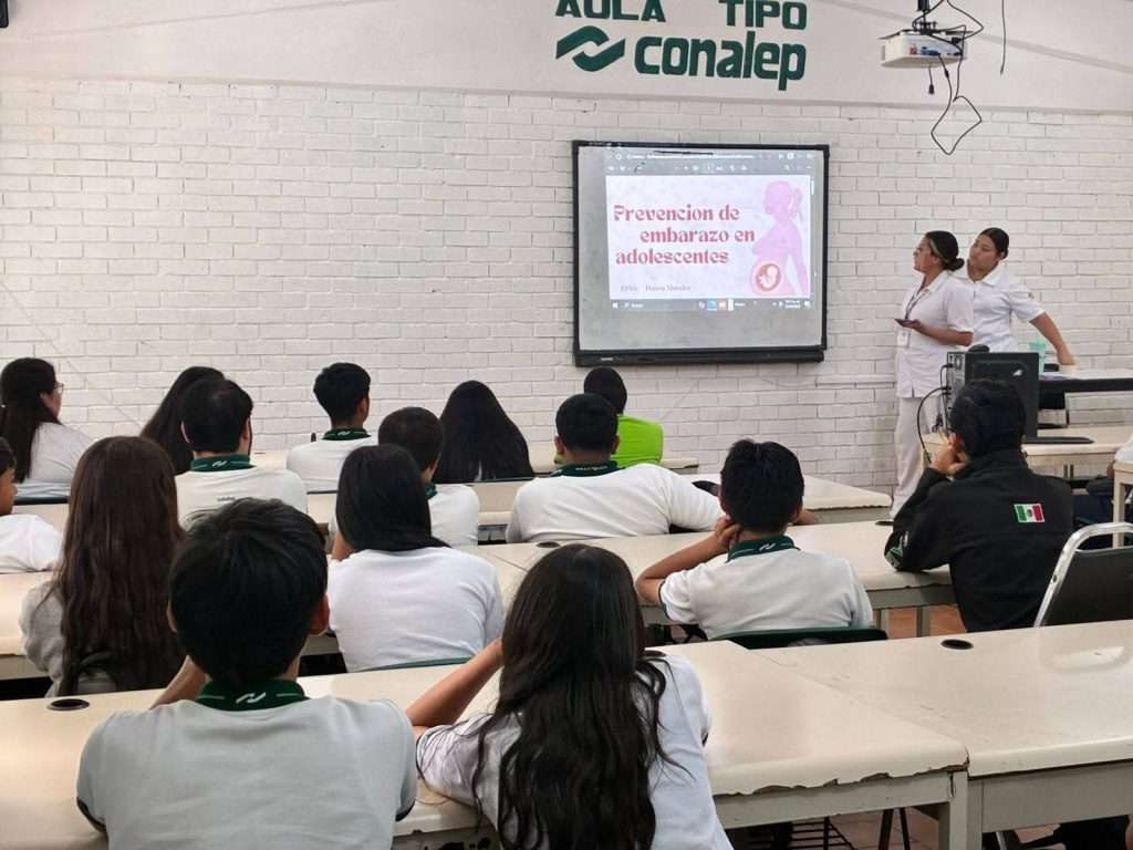 La plática titulada “Prevención del embarazo” fue impartida por personal del Centro de Salud, con el respaldo del Dr. Jorge Cervera, quien brindó atención directa a los estudiantes durante la jornada.