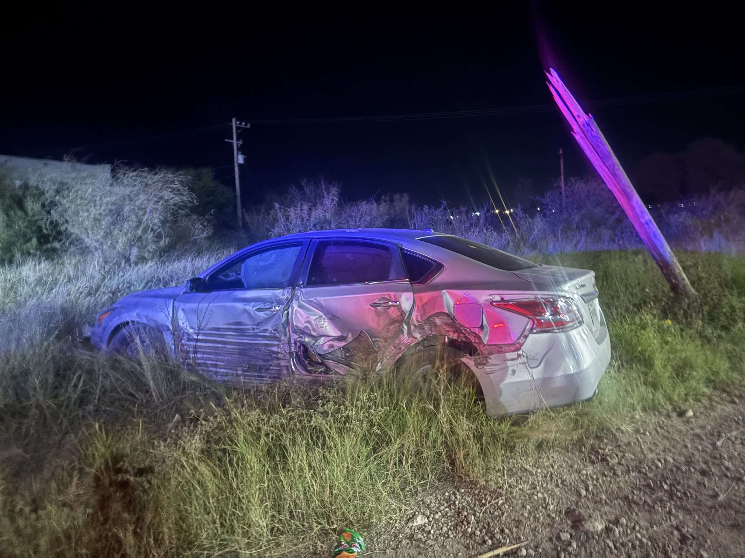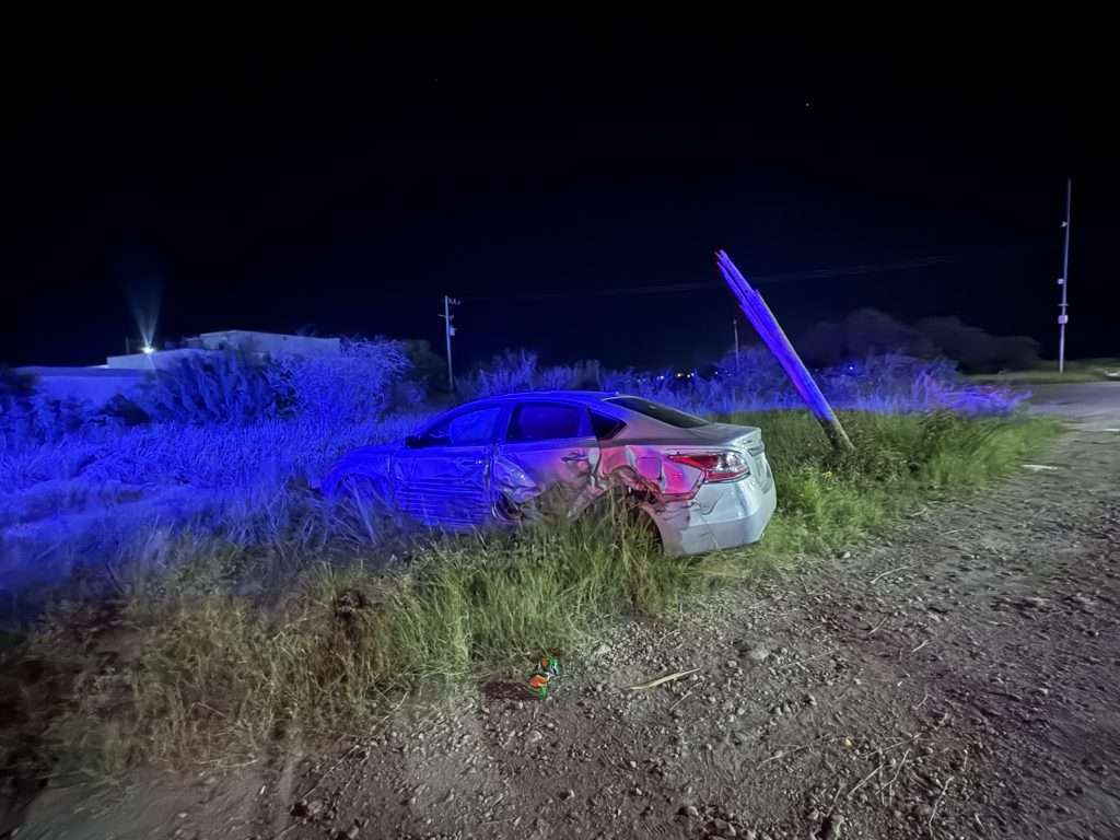 Un aparatoso accidente se registró durante la madrugada del domingo sobre el libramiento Cuauhtémoc en Sabinas, donde un vehículo terminó completamente destrozado tras impactarse contra un poste de luz.