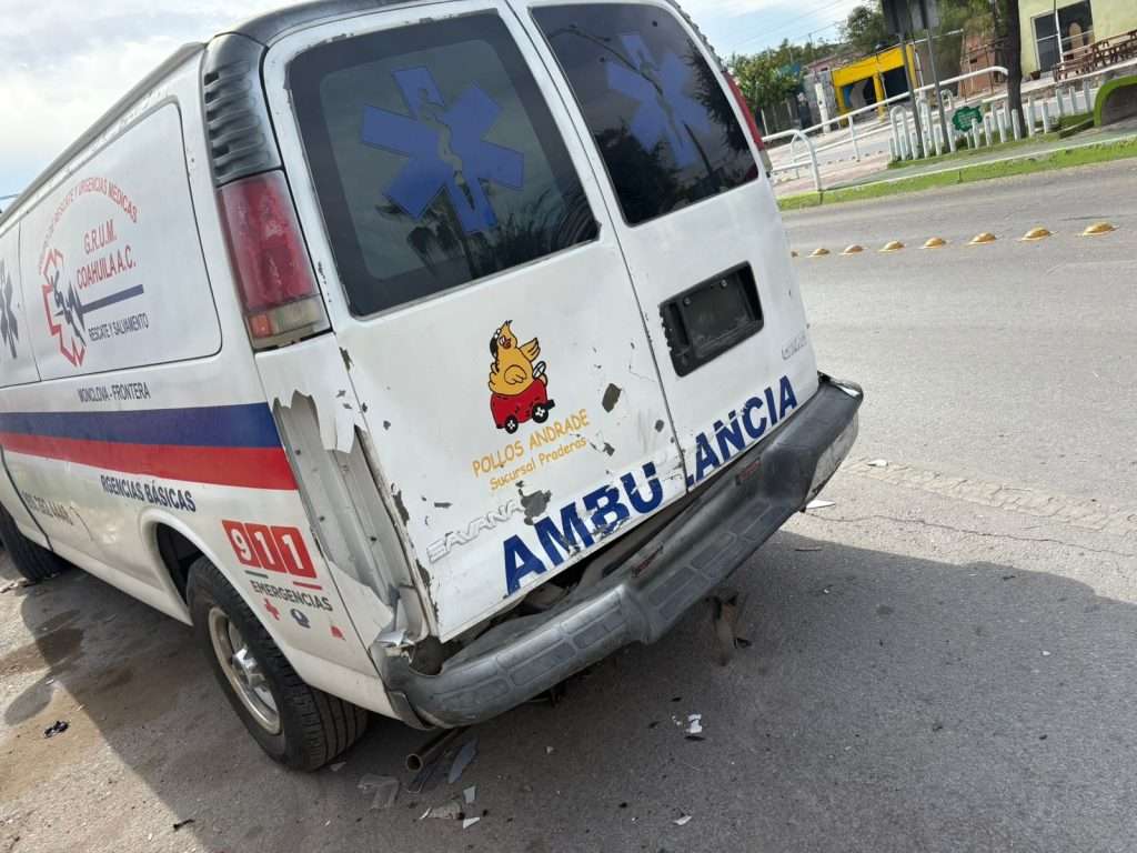 Una ambulancia del Grupo de Rescate y Urgencias Médicas (GRUM) terminó con cuantiosos daños materiales tras ser impactada por un conductor en estado de ebriedad durante la madrugada de este lunes en la colonia Nueva Rosita.