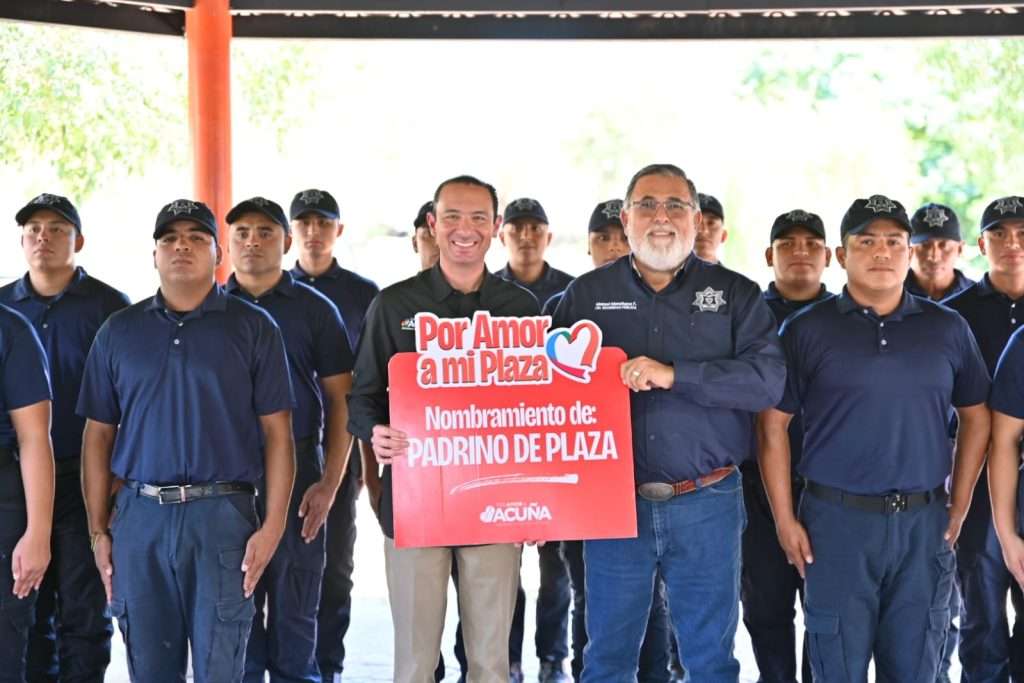 El alcalde Emilio de Hoyos llevó a cabo la entrega de esta plaza, en compañía del director de Seguridad Pública Manuel Menchaca, quien junto con cadetes se sumó al apadrinamiento de este espacio.