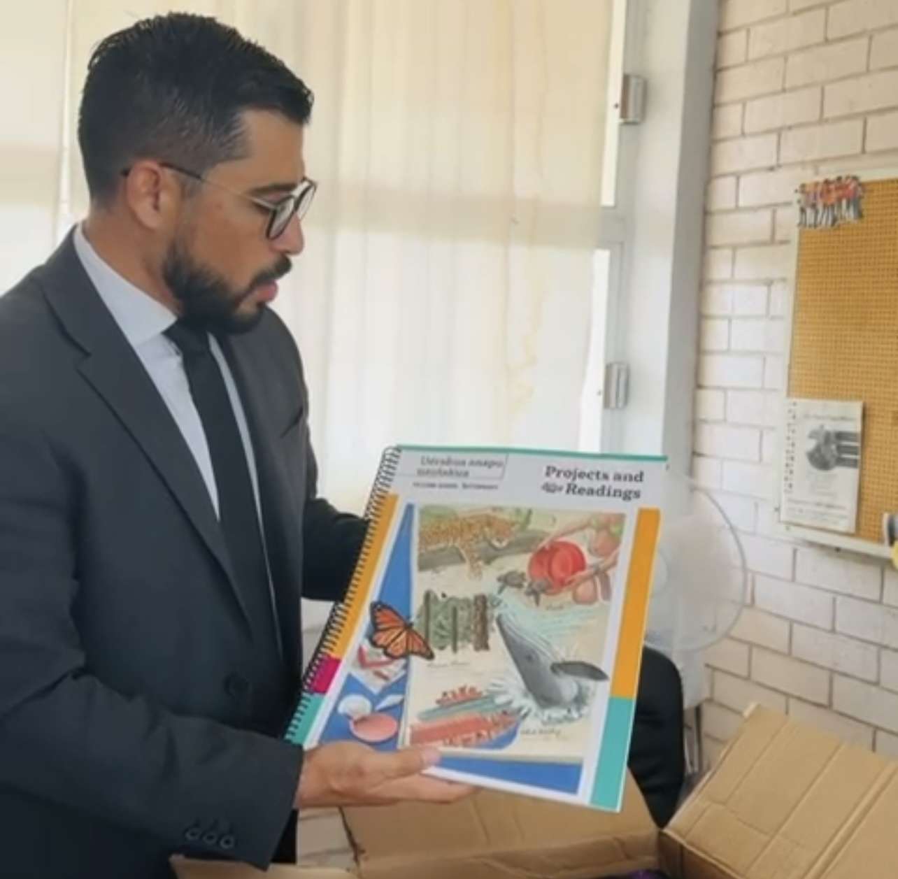 El director del plantel, Eduardo Méndez, informó que este material educativo fue enviado por la Secretaría de Educación y tiene como principal característica el aumento en el tamaño de la letra, lo que facilita la lectura a estudiantes que requieren adaptaciones visuales, como el uso de lentes especiales o tienen dificultades para leer los libros convencionales.