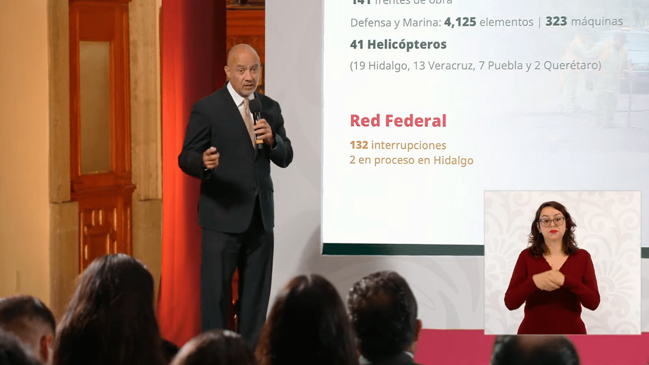 El Secretario de Infraestructura, Comunicaciones y Transportes (SICT), Jesús Esteva Medina, informó que continúan los trabajos para atender las afectaciones en carreteras, caminos estatales y municipales. Estas afectaciones fueron provocadas por las lluvias en Veracruz, Puebla, Hidalgo, Querétaro y San Luis Potosí. Hasta el momento, se reportan 11 municipios afectados y 191 localidades incomunicadas.