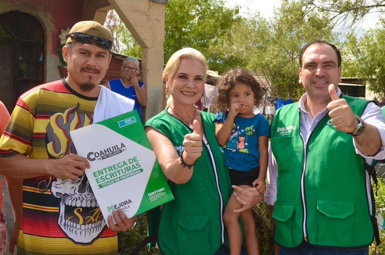 La entrega se realizó como parte del Programa Estatal de Escrituración, impulsado por el Gobierno del Estado de Coahuila, en coordinación con el Gobierno Municipal de Múzquiz que encabeza la alcaldesa Laura Jiménez Gutiérrez, quien estuvo presente durante la entrega junto con autoridades estatales y municipales.