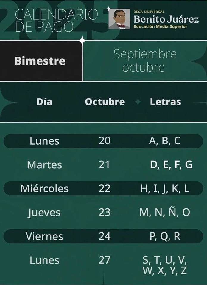 La Secretaría de Bienestar en Coahuila informó que, del 20 al 27 de octubre, se llevará a cabo la entrega del apoyo económico correspondiente a la Beca Universal Benito Juárez para estudiantes de educación media superior que continúan dentro del programa.
