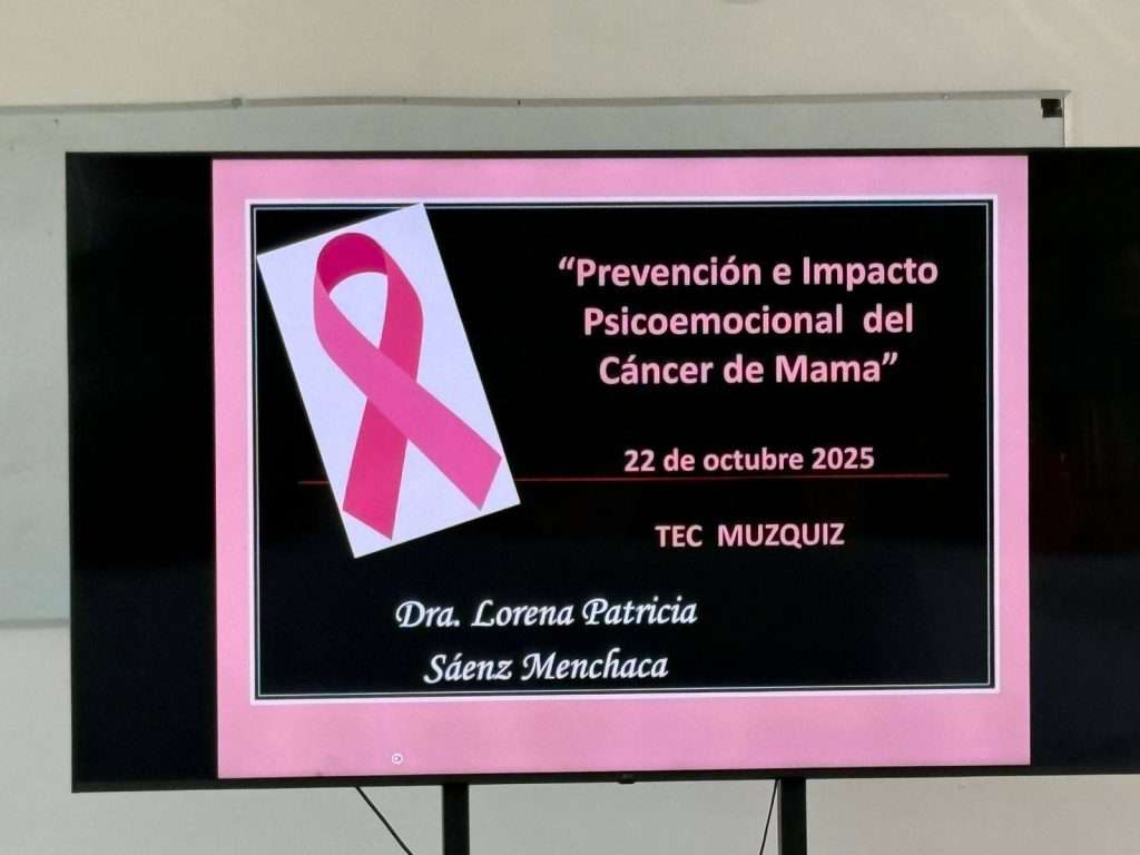 En el marco de las actividades de sensibilización sobre la lucha contra el cáncer de mama, el Instituto Tecnológico Nacional de México (TecNM) Campus Múzquiz llevó a cabo la conferencia titulada “Prevención e Impacto Psicoemocional del Cáncer de Mama”, impartida por la Dra. Lorena Patricia Sáenz Menchaca.