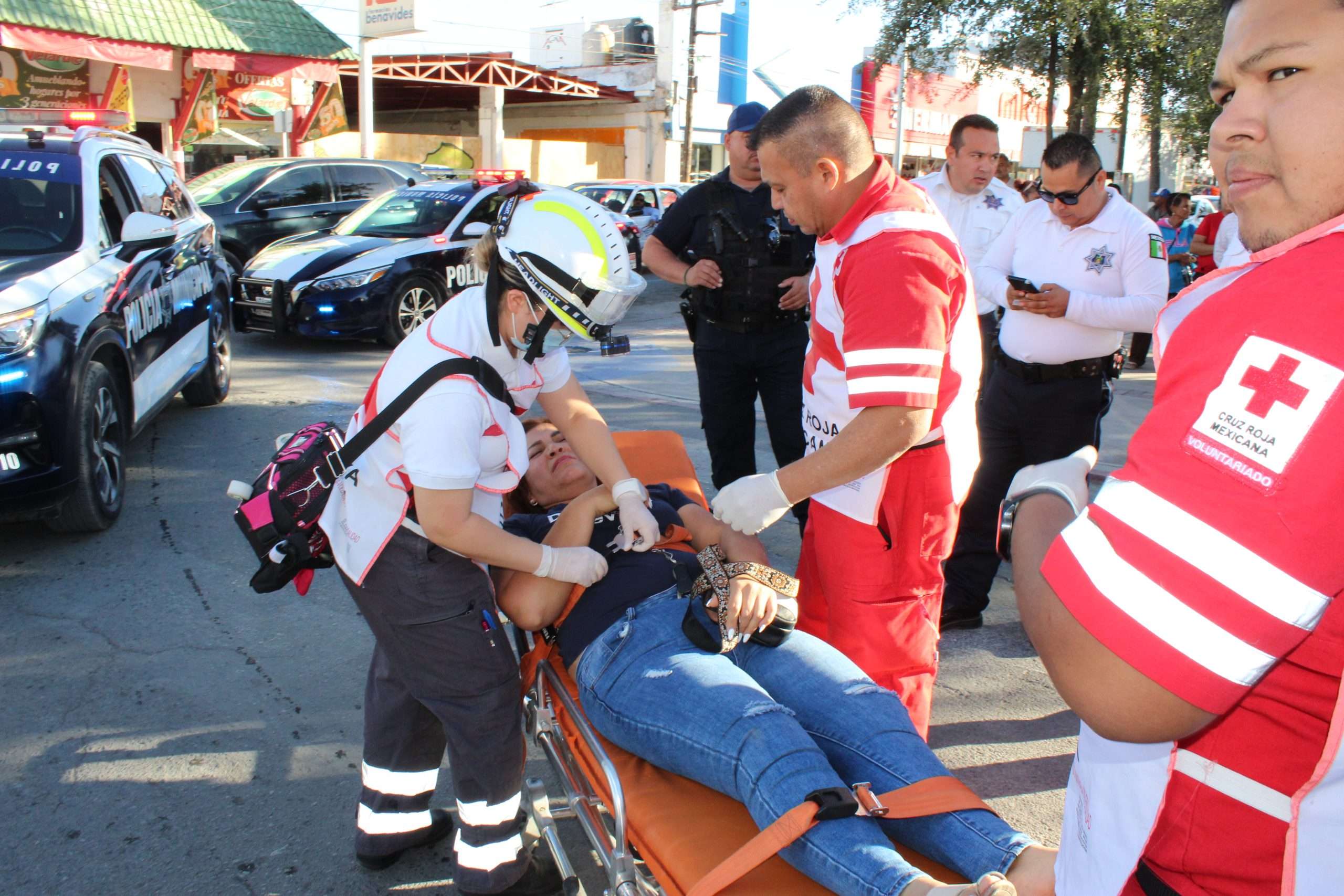 Personal de la Cruz Roja arribó minutos después para atender a la lesionada, quien fue estabilizada en el lugar y trasladada a un hospital local.