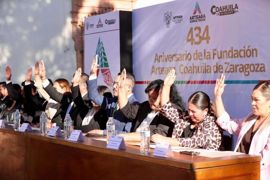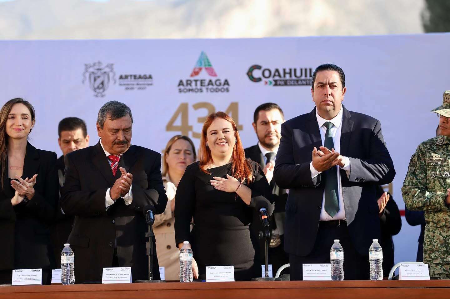 Felicidades Arteaga, Coahuila. Hoy celebramos con orgullo el 434 aniversario de nuestro querido municipio, tierra de historia, tradición y gente trabajadora. Conmemoramos esta importante fecha con una Sesión Solemne en honor a Arteaga, reafirmando el compromiso de seguir construyendo juntos un municipio fuerte, unido y próspero.