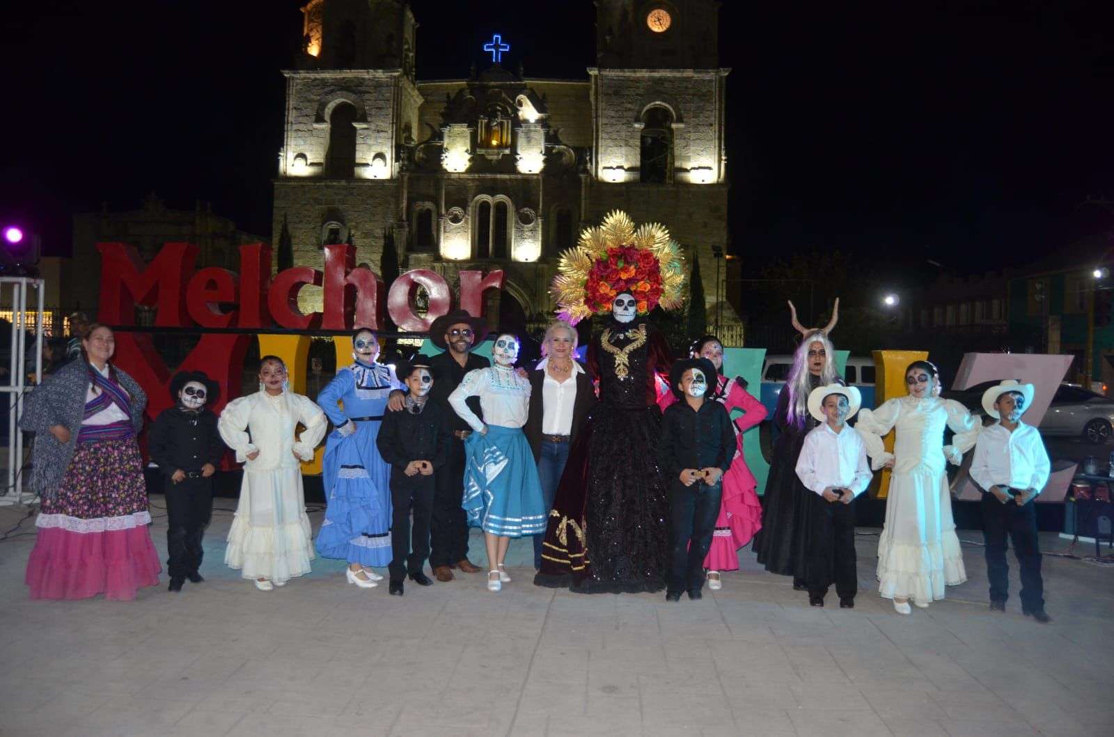 La jornada inició con un recorrido por las calles principales, liderado por La Catrina, acompañada de su corte de ánimas y de Gizzel I, Reina de las Fiestas Tradicionales de Múzquiz, así como su corte de honor. A este emotivo desfile se unieron alumnos de la Escuela Secundaria Agustín Terrazas Menchaca, del Instituto Tecnológico Superior de Múzquiz y los grupos de danza Guittzili y Muzkugui, quienes llenaron de color, música y tradición el paso hacia la plaza principal.