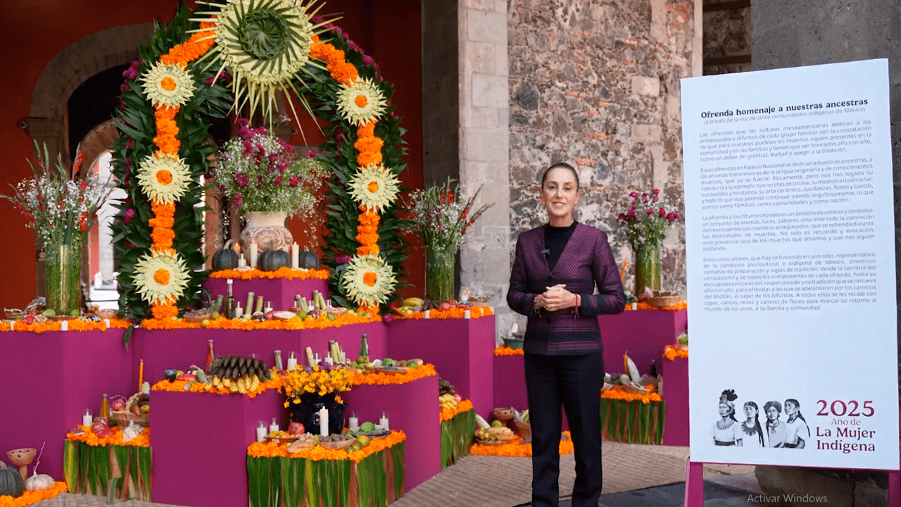 La presidenta Claudia Sheinbaum Pardo conmemoró el Día de Muertos con una ofrenda instalada en Palacio Nacional, dedicada a “nuestras ancestras”, mujeres indígenas que dejaron una huella profunda en la historia de México.