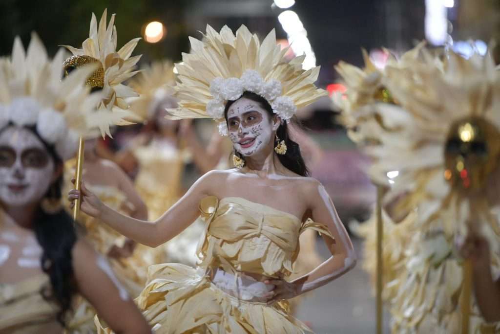 El evento inició con un desfile que recorrió desde el libramiento Oriente hasta la plaza Benjamín Canales, en donde contingentes de escuelas, dependencias y asociaciones participaron activamente caracterizados de esta fecha donde se celebra los fieles difuntos.