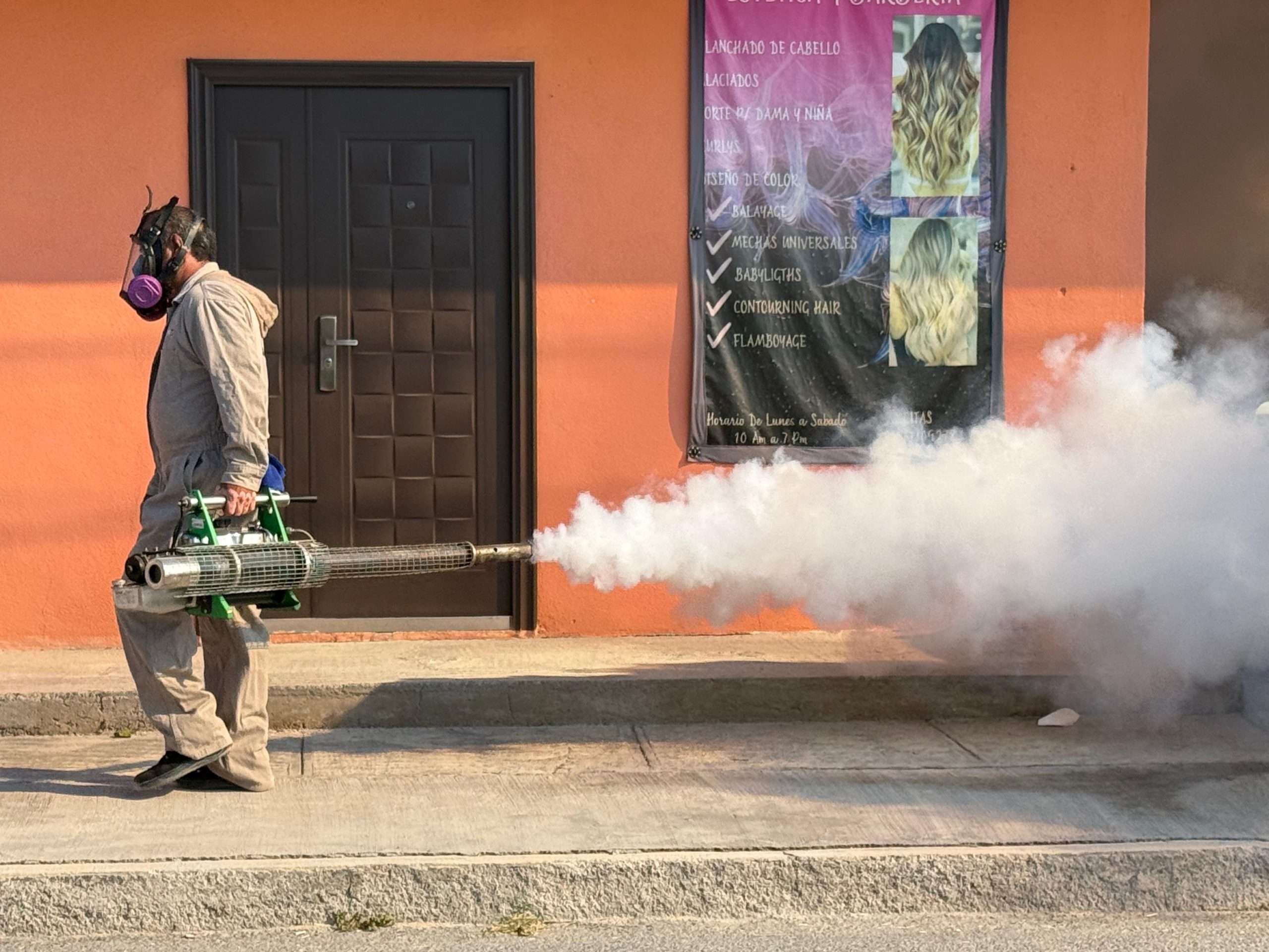 Personal de la Jurisdicción Sanitaria No. 04 realizó este lunes una jornada intensiva de fumigación y entrega de abate en la colonia Leandro Valle, con el propósito de eliminar criaderos del mosquito transmisor del dengue.