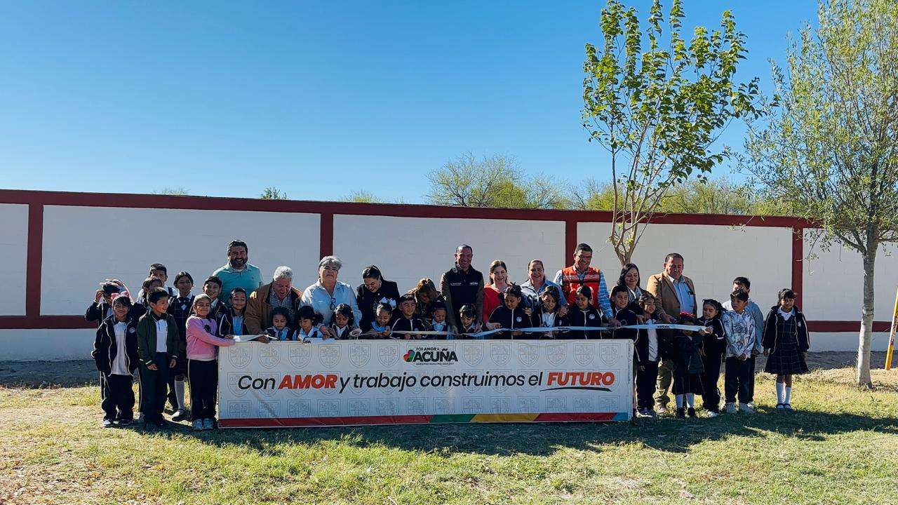 El alcalde Emilio de Hoyos, en compañía de la directora de Desarrollo Social Tania Pérez Rivera, regidores, directores de la administración y alumnos de la escuela primaria ‘’Centenario del Ejercito mexicano’’, dieron el corte del listón de la obra de barda perimetral.
